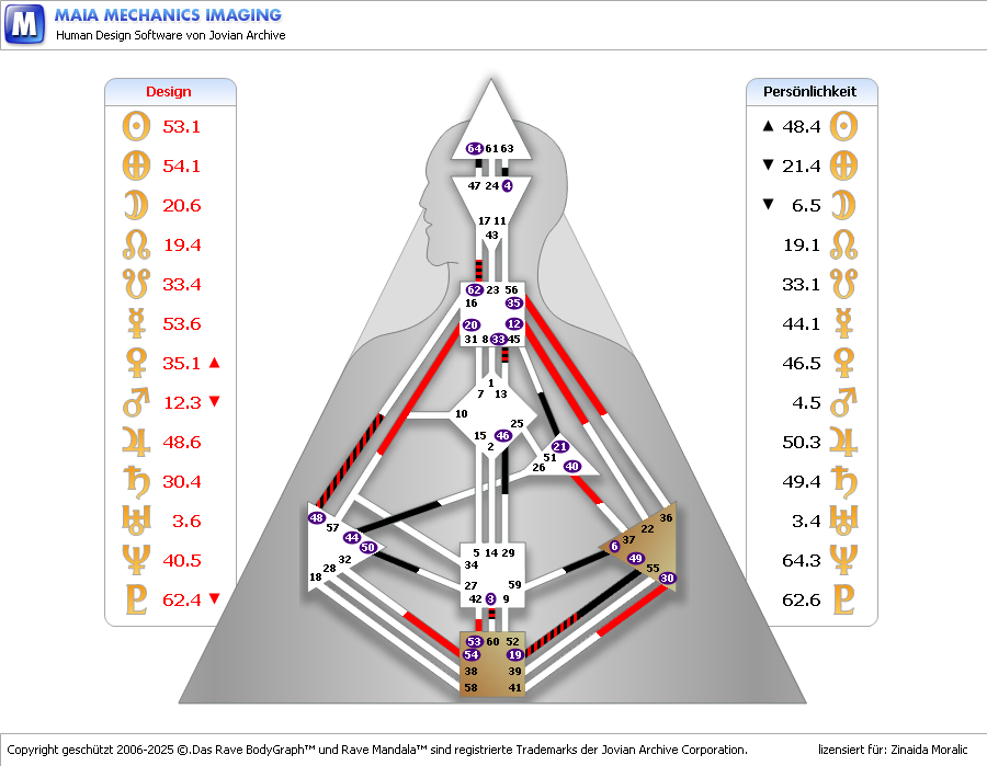 Die korrekte Ernährung beeinflusst und verbessert unsere Körperfunktionen und im Human Design können wir ablesen, wie unsere Ernährungsstrategie genetisch festgelegt ist (PHS). Dies ist unterhalb der „Oberfläche“ zu sehen. Jedes Tor hat 6 Linien, jede Linie 6 Farben, jede Farbe 6 Töne und jeder Ton 5 Basen.